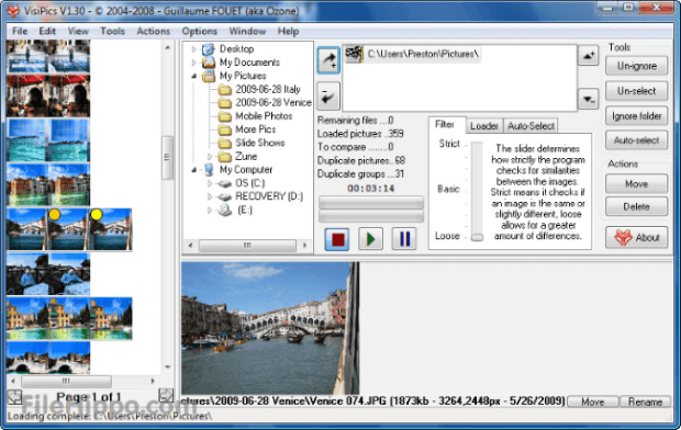 Searches duplicates with adjustable scanning strictness. It’s simple to use but may struggle with very large photo libraries due to slower performance.